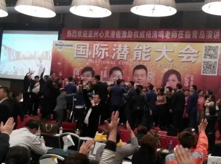 “想要自己說服力倍增的請舉手,想要收入跟業(yè)績倍增的舉雙手,想要自己快速成功的舉雙手加雙腳!”楊濤鳴在臺上說著,會場兩邊站著十幾個工作人員,用及其夸張的方式鼓掌,現(xiàn)場還會有學(xué)員現(xiàn)身說法,講述自己報名楊濤鳴的課程之后,變得多么成功。