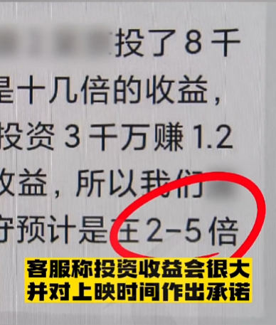 此前,市民小胡看到廣告上有一部電影在向大眾融資,他聯(lián)系上了客服??头蛩l(fā)送了電影介紹,聲稱這部電影由知名喜劇演員出演,將會(huì)獲得非常大的投資收益,并對(duì)電影的上映時(shí)間作出承諾。