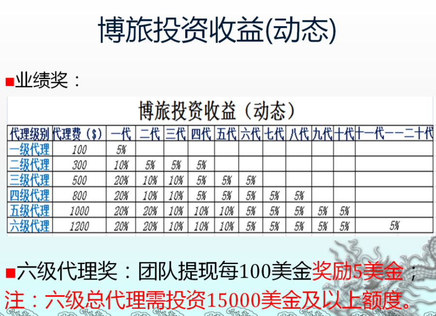 該網(wǎng)絡(luò)傳銷組織主要運(yùn)用犯罪分子設(shè)立的“博旅理財(cái)”網(wǎng)絡(luò)傳銷平臺(tái)來進(jìn)行傳銷活動(dòng),該平臺(tái)系以美金為籌碼的方式進(jìn)行平臺(tái)運(yùn)作,包括會(huì)員入門、建立層級(jí)關(guān)系,計(jì)酬返利等,并以澳門博彩和旅游業(yè)的利潤(rùn)分紅為幌子,誘騙群眾繳納入門費(fèi),謀取不法利益。
