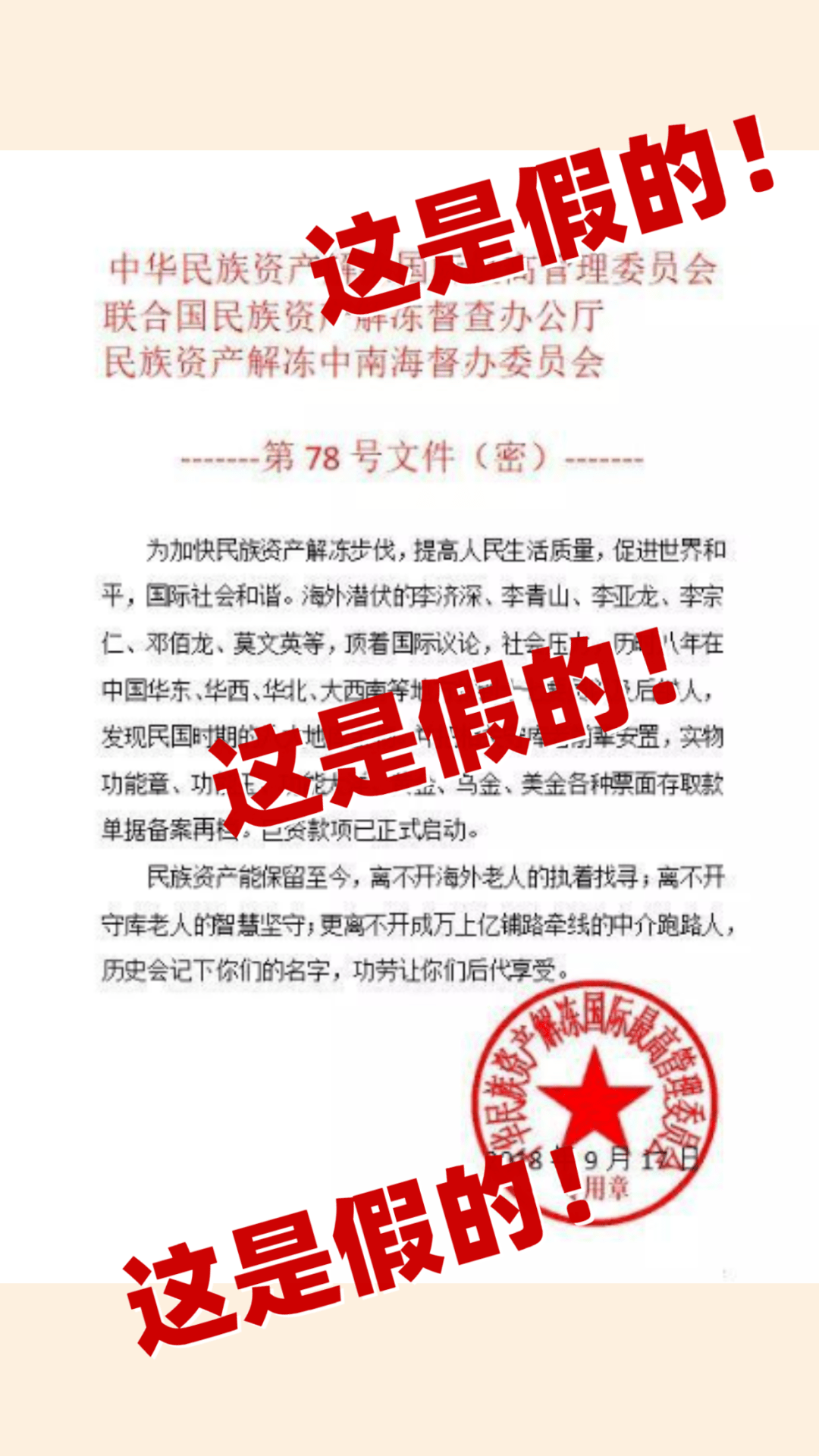 我國沒有任何民族資產(chǎn)解凍類項目和組織,要增強識騙防騙意識,不要上當受騙!