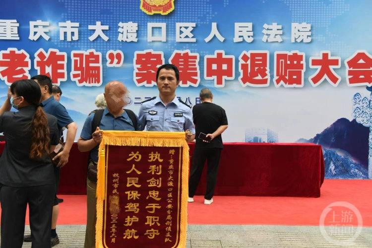 “要不是你們,我們的養(yǎng)老錢就追不回來了……”6月8日上午,大渡口“養(yǎng)老詐騙案”集中退賠大會現(xiàn)場傳出陣陣掌聲,接過民警幫自己追回的養(yǎng)老錢,老人們都激動不已,紛紛向民警獻(xiàn)上錦旗。