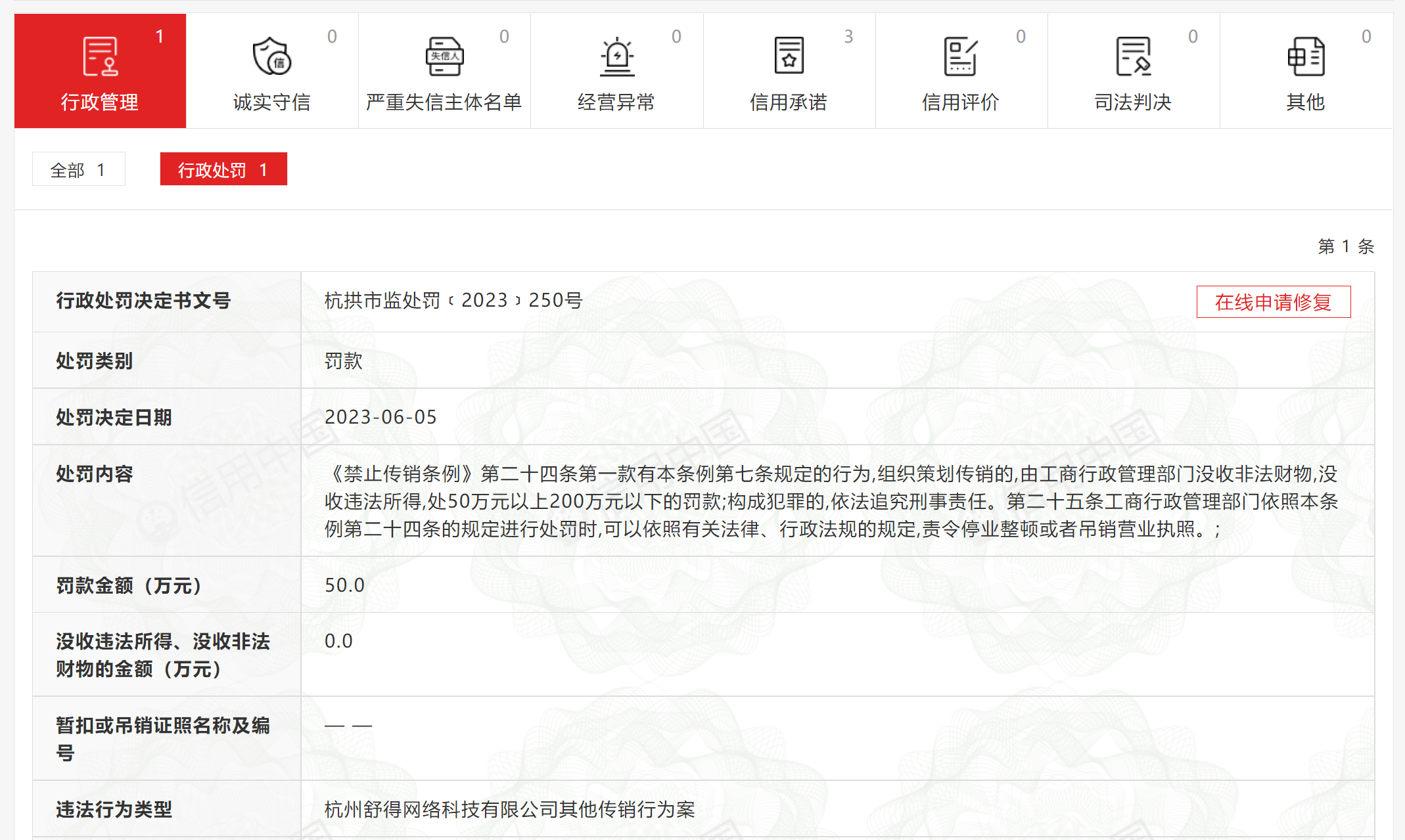 6月13日,李旭反傳防騙團(tuán)隊(duì)從信用中國(guó)獲悉,杭州舒得網(wǎng)絡(luò)科技有限公司(以下簡(jiǎn)稱(chēng):杭州舒得公司)通過(guò)互聯(lián)網(wǎng)“樂(lè)拼賺”平臺(tái)發(fā)展會(huì)員參與拼團(tuán)理財(cái)從事傳銷(xiāo)活動(dòng),被杭州市拱墅區(qū)市場(chǎng)監(jiān)督管理局罰款人民幣500000元整。