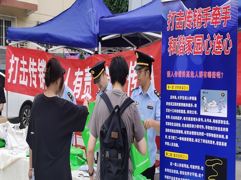 活動現(xiàn)場通過懸掛橫幅、在學(xué)生食堂發(fā)放宣傳材料等方式向?qū)W生科普傳銷和直銷的差異性,揭示傳銷活動的危害性、隱蔽性和欺詐性,提高廣大學(xué)生對傳銷特別是網(wǎng)絡(luò)購物型傳銷、網(wǎng)絡(luò)創(chuàng)業(yè)型傳銷的辨識能力,增強(qiáng)防范意識。