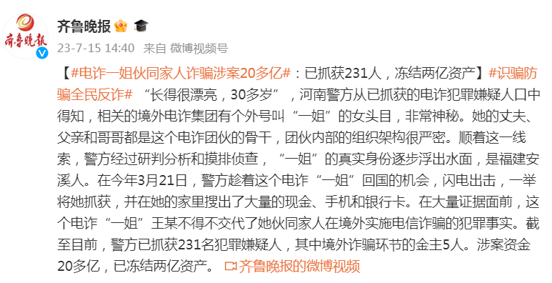電詐“一姐”伙同家人詐騙涉案20多億:已抓獲231人凍結(jié)兩億資產(chǎn) 二維碼