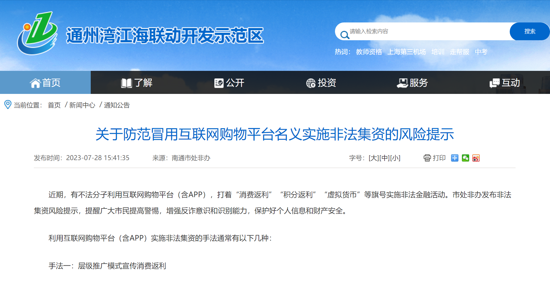 關于防范冒用互聯(lián)網購物平臺名義實施非法集資的風險提示