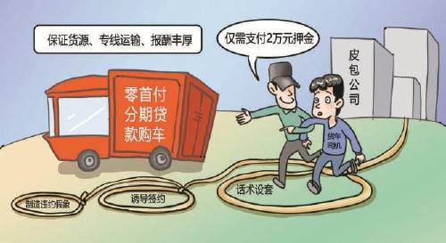 成立空殼物流公司,以“高薪保底、月入過(guò)萬(wàn)、工作輕松”為承諾招募貨車司機(jī),誘騙其交納合作費(fèi)、加盟費(fèi)、押金等費(fèi)用,進(jìn)而制造違約假象,誘騙高額押金——2000余名司機(jī)遭遇“套路運(yùn)”