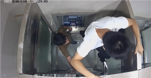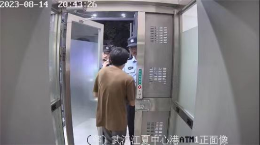 據(jù)悉,8月14日20時26分,4名青年一同進入農(nóng)行武漢江夏中心港支行自助服務區(qū),2人進入防護艙內(nèi)。取款過程中,灰衣男子突然按住墻上的緊急求助按鈕大喊“救命啊”。