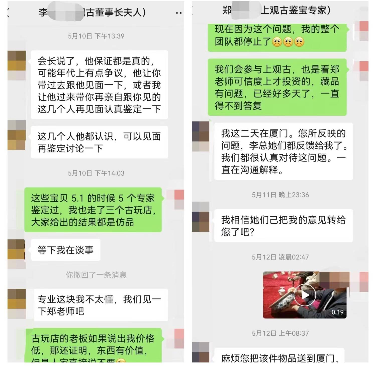就這樣,郝先生和張女士在平臺上購買了幾件古董,可4月29日到貨后,張女士將藏品送往泉州市博物館進行鑒定,專家指出這些藏品均為假貨。郝先生也帶著收到的藏品走訪了三家古玩店,得到的結(jié)論也均是仿品。郝先生立刻找到李某和鄭某,但是二人拒不承認,只要求他將藏品送往廈門繼續(xù)做鑒定。