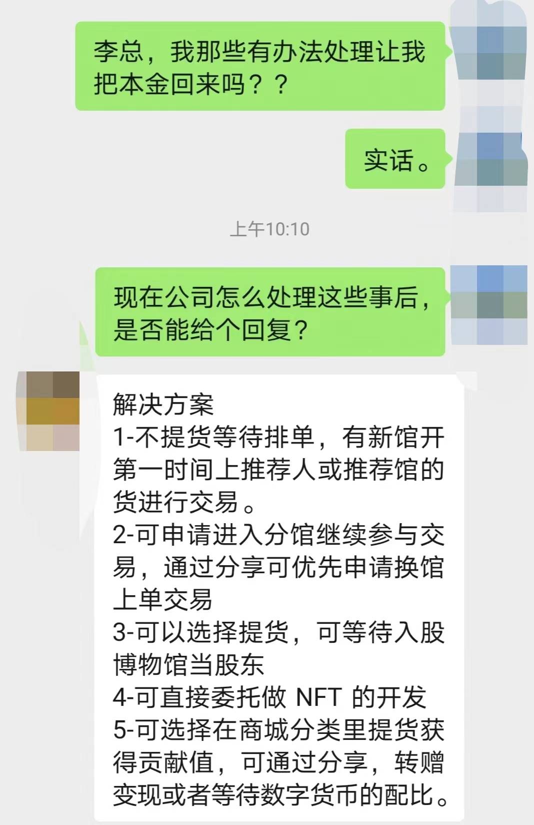 郝先生隨即詢問李某可否退回本金,李某則告訴他要么不提貨等新開館繼續(xù)交易,要么提貨入股博物館當股東,轉(zhuǎn)贈變現(xiàn)或者等待數(shù)字貨幣的配比。