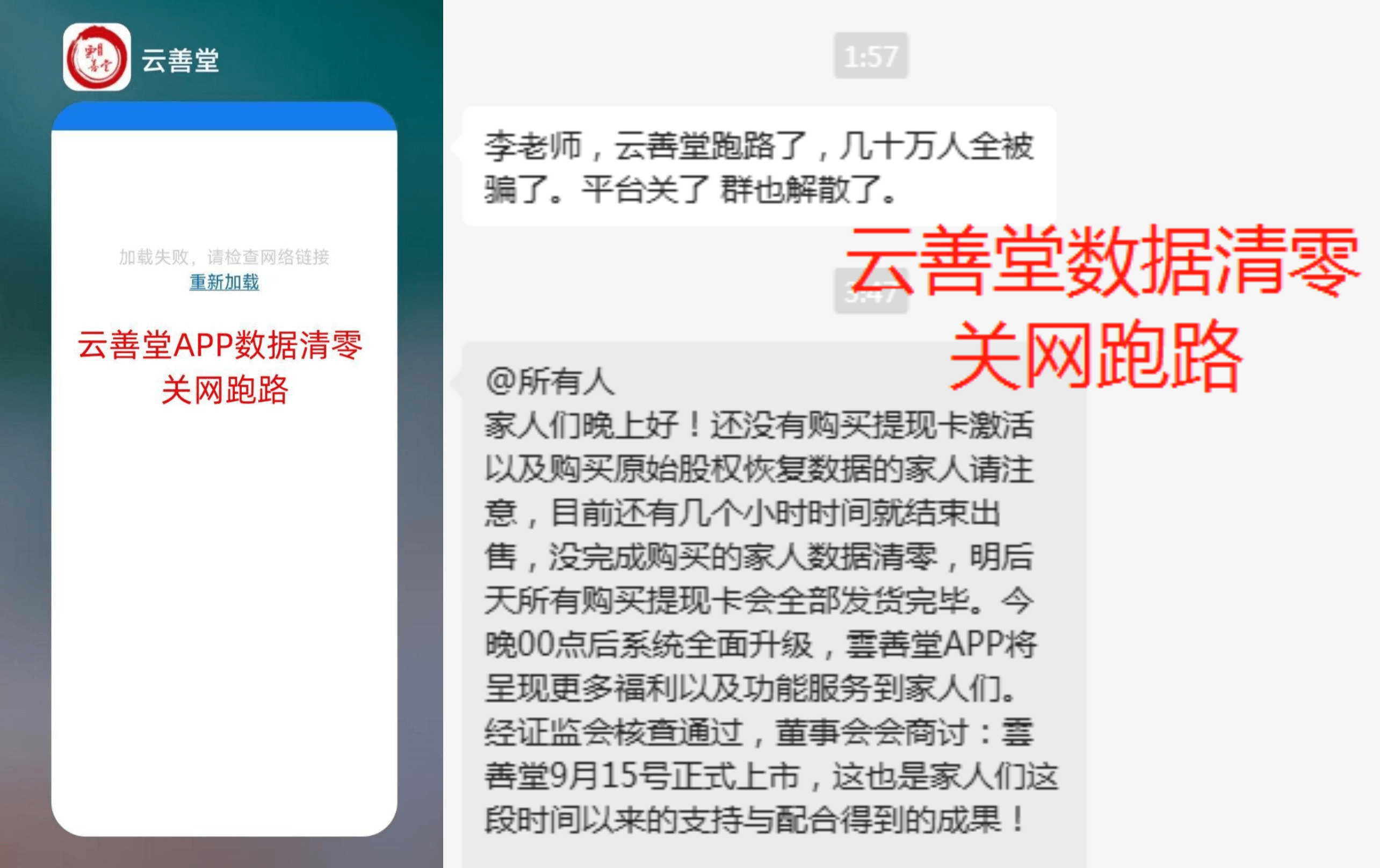 “中國國新”APP、"云善堂"APP這兩個詐騙平臺數(shù)據(jù)清零關(guān)網(wǎng)跑路