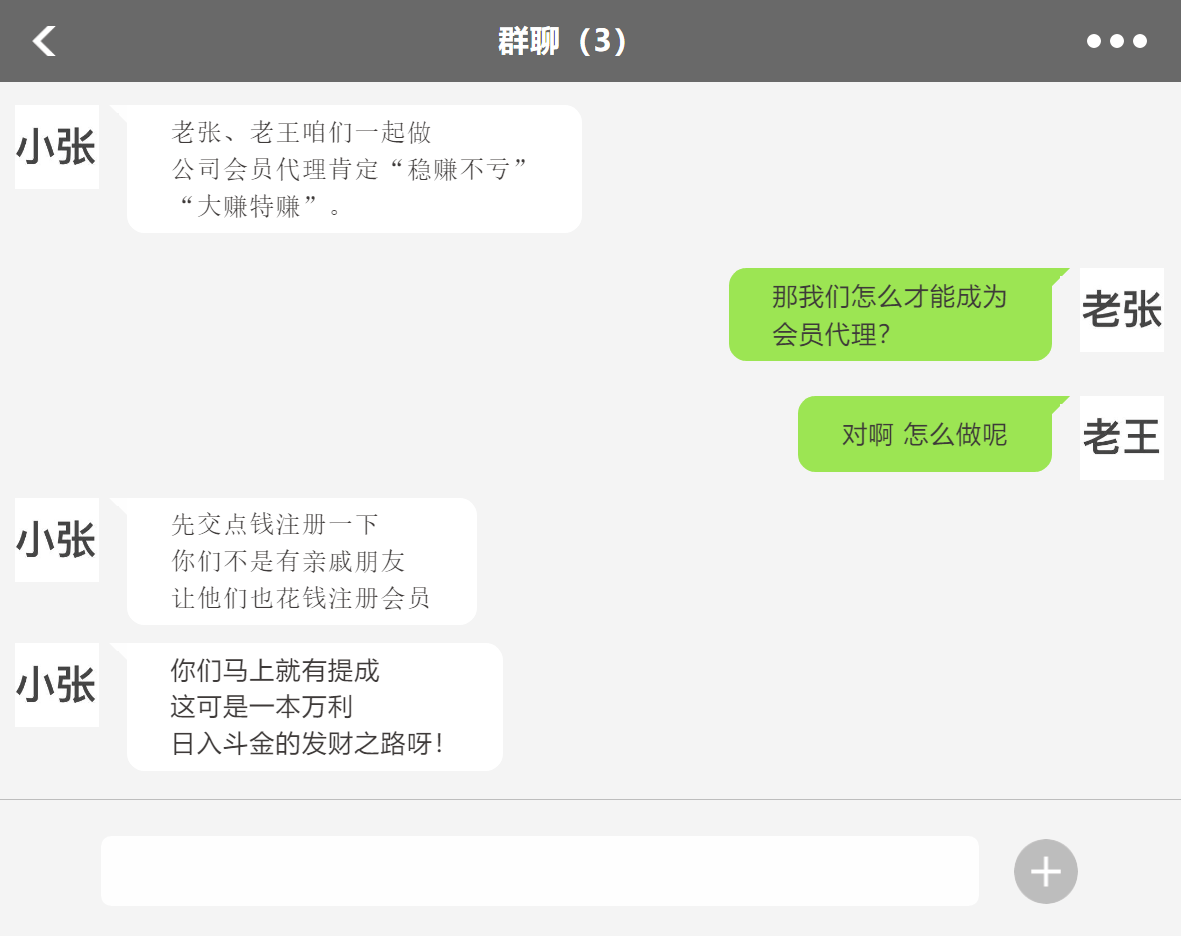 被告人小張經(jīng)過他人介紹注冊成為該公司會員后,為了謀取利益,便發(fā)展被告人老張、老王等人成為其下線會員。三人通過口口相傳等方式發(fā)展會員,并引誘參加者繼續(xù)發(fā)展他人注冊成為該公司會員。