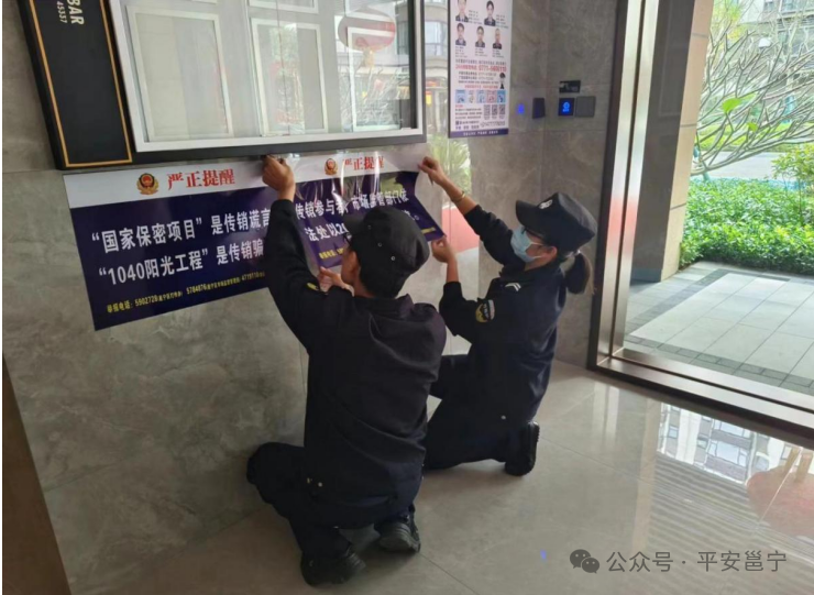 同時(shí),打傳專業(yè)隊(duì)員深入龍崗片區(qū)銀泉一品龍灣、萬科公望、等多個(gè)小區(qū)開展日常打擊傳銷宣傳活動(dòng),在小區(qū)顯著位置設(shè)立舉報(bào)傳銷宣傳欄,樓棟出入口粘貼警示標(biāo)語,指導(dǎo)群眾注冊、登錄“綠城打傳”微信小程序及下載國家反詐app。共計(jì)設(shè)立舉報(bào)傳銷宣傳欄35幅,粘貼警示標(biāo)語70張,指導(dǎo)群眾下載國家反詐App及注冊“綠城打傳”微信小程序120余人,全面提升轄區(qū)群眾防范傳銷的意識,以實(shí)際行動(dòng)增強(qiáng)轄區(qū)群眾的安全感和滿意度。