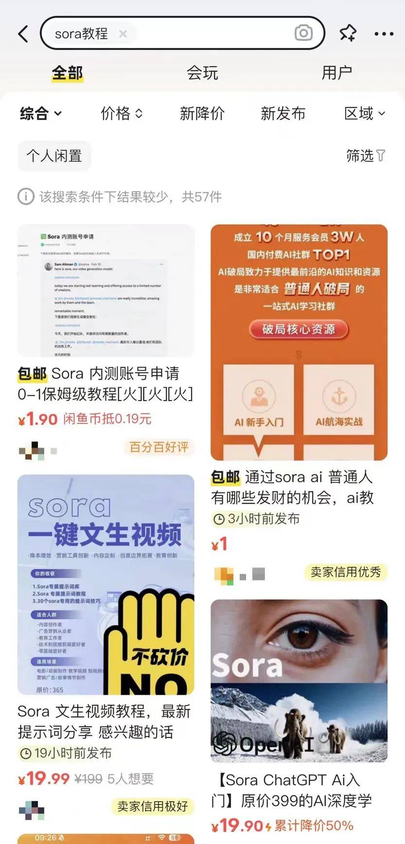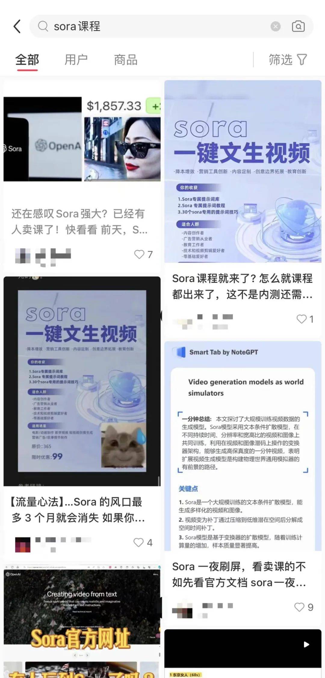 △某二手平臺關(guān)于Sora課程的帖子