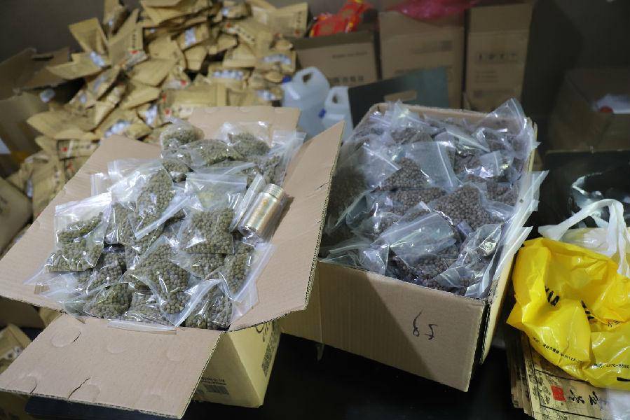 尚未包裝的假藥顆粒。