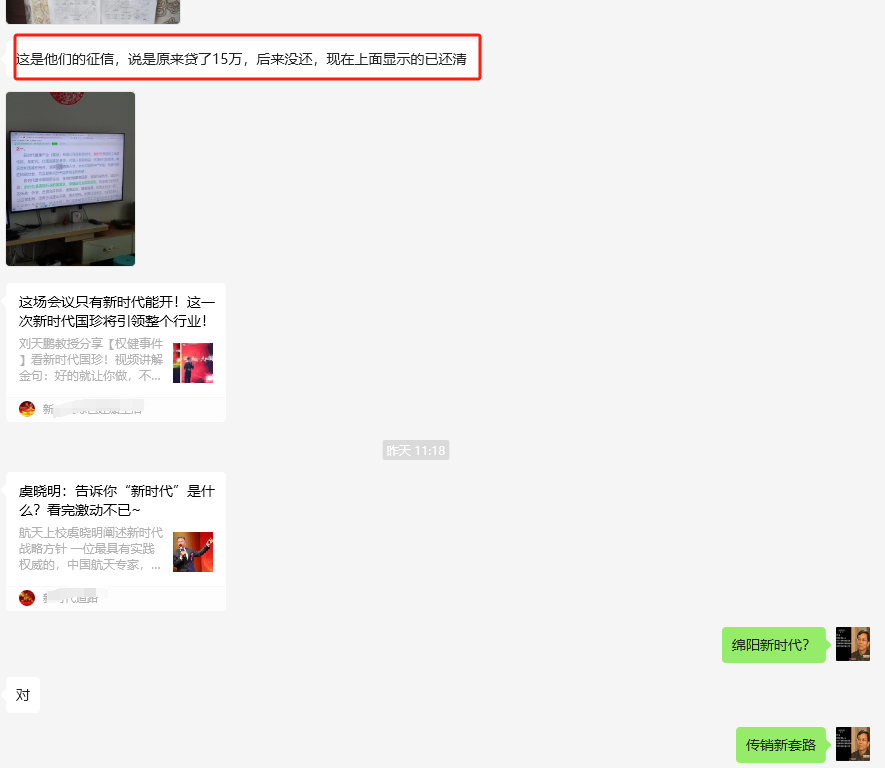據(jù)李旭反傳防騙團(tuán)隊(duì)了解的情況,“平債”也不僅僅是秦皇島的傳銷組織在玩,四川綿陽假冒“新時代”傳銷組織、河北雄安新區(qū)等地傳銷組織也在大肆宣傳。
