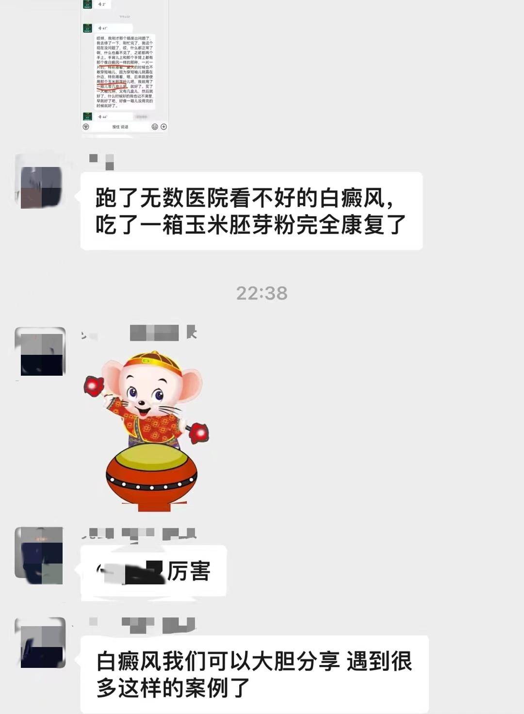 經(jīng)銷商大肆宣傳“吃一箱玉米胚芽粉白癜風(fēng)完全康復(fù)了”的案例。