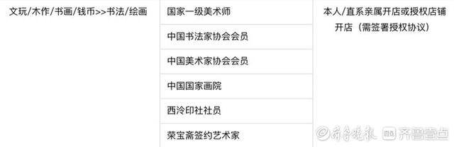 記者查看該客服人員提供的信息表發(fā)現(xiàn),平臺(tái)目前規(guī)定包括“國(guó)家一級(jí)美術(shù)師”“中國(guó)書(shū)法家協(xié)會(huì)會(huì)員”等六種協(xié)會(huì)會(huì)員或職稱的“大師”需要提供資質(zhì)證明才能入店進(jìn)行售賣。對(duì)于其他民營(yíng)協(xié)會(huì)的會(huì)員作品是否可以后期進(jìn)入店鋪進(jìn)行銷售,該客服人員則表示并不清楚。 [此文來(lái)源:齊魯壹點(diǎn) 記者 程凌潤(rùn) 李夢(mèng)瑤 見(jiàn)習(xí)記者 石晟綺,版權(quán)說(shuō)明:以上文字及圖片來(lái)源于網(wǎng)絡(luò),僅供學(xué)習(xí)和交流使用,不具有任何商業(yè)用途,其目的在于傳遞更多的信息,并不代表本平臺(tái)贊同其觀點(diǎn)。版權(quán)歸原作者所有,如涉版權(quán)或來(lái)源標(biāo)注有誤,請(qǐng)及時(shí)和我們?nèi)〉寐?lián)系,我們將迅速處理,謝謝!]