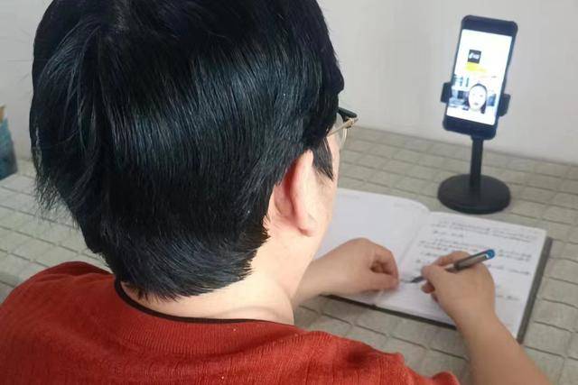 ▲學(xué)員用手機(jī)上視頻課。受訪者供圖