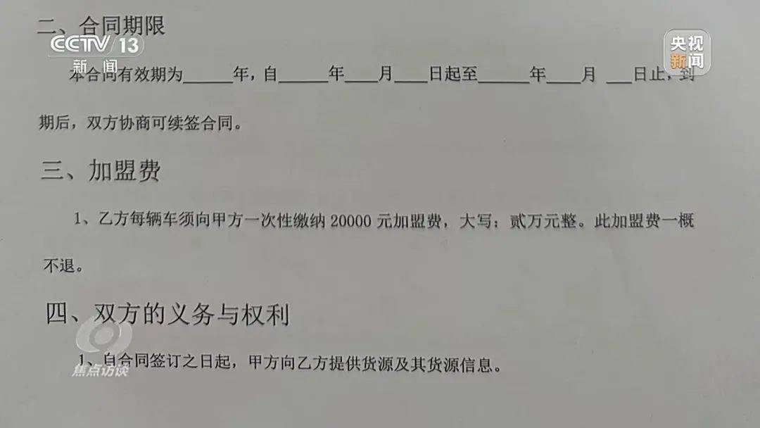 比如一名司機,自己有車,就被對方要求簽的是貨車加盟合作合同,上交加盟款。