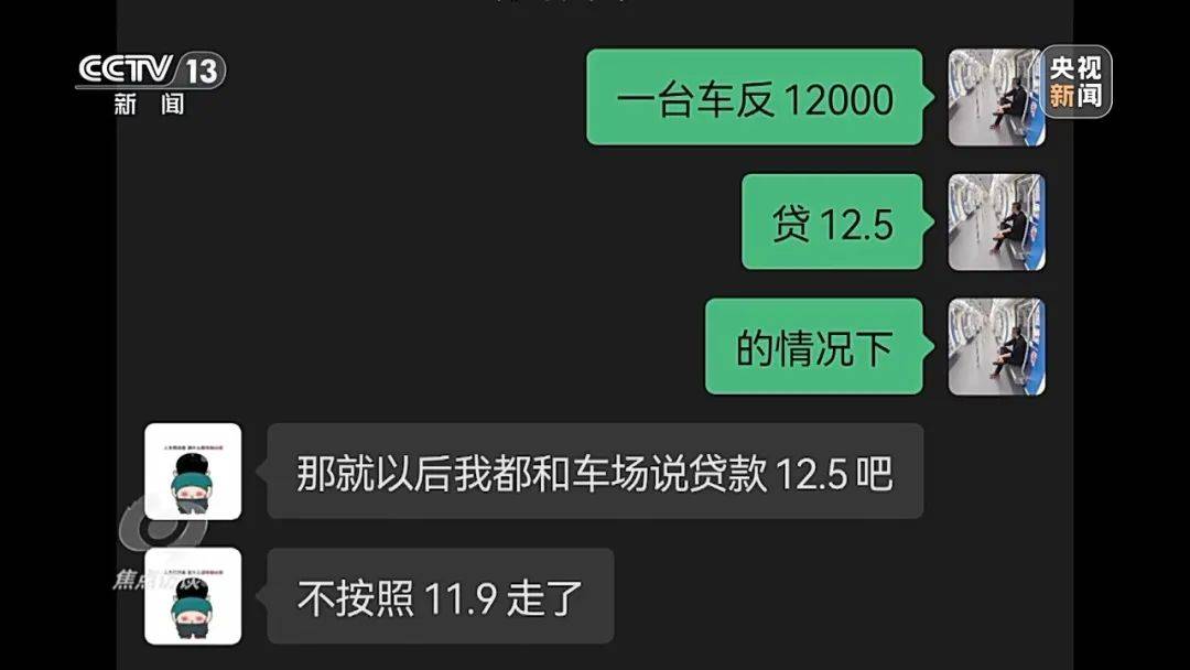 所謂物流公司內(nèi)部的一段聊天記錄顯示,一位司機購買的一臺車,物流公司的人和貸款公司一起運作,把原本應(yīng)該是11.9萬的貸款總額提高到12.5萬,物流公司人員從中可以獲取12000元的返利。