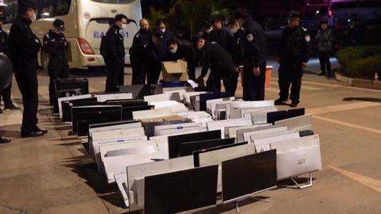 2024年2月28日,公安部通報(bào),中老警方聯(lián)合打擊跨境電詐犯罪,268名犯罪嫌疑人移交我方。圖為警方繳獲的電信詐騙電子設(shè)備。視覺中國(guó)供圖