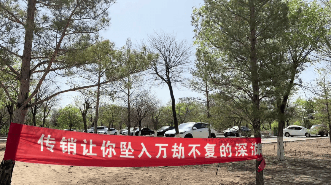 甚至對(duì)公園內(nèi)展示的打擊傳銷的橫幅及宣傳板,他們都有針對(duì)的說法。