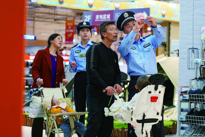 5月14日,浙江省舟山市公安局普陀區(qū)分局東港派出所民警走進轄區(qū)商超開展反假幣宣傳。邵宇翔攝