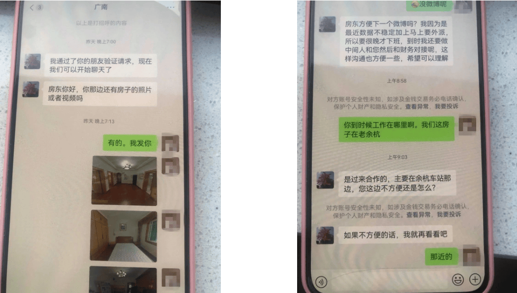 余杭的孫女士,在網(wǎng)上掛出了一套閑置的房子,5月20日這天,一名租客添加了孫女士微信,表示自己想租房子。