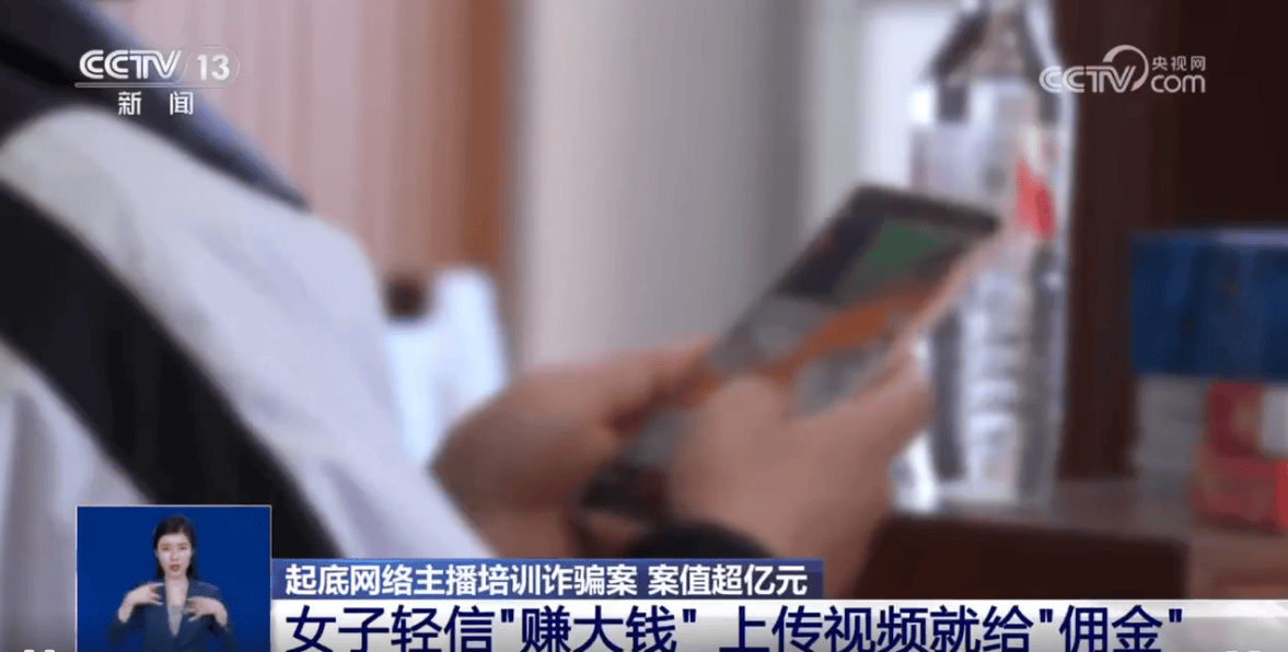 發(fā)表時間:2024-06-01 21:06作者:央視新聞來源:央視新聞 去年7月,浙江寧波的張女士刷短視頻時收到私信,對方自稱網(wǎng)紅孵化基地“客服”,并稱只要買499元的課程,就能賺取高額收益,還承諾幫客戶吸粉成“網(wǎng)紅”。張女士操作后,賬號只新增了一些“僵尸粉”。詐騙團伙又稱需要“導(dǎo)師”來匹配更優(yōu)質(zhì)資源,并以買視頻、買賬號、開藍(lán)V等“話術(shù)”,誘導(dǎo)其先后投入超10萬元。
