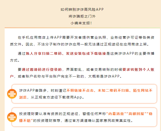 虛假投資詐騙平臺特征:收款賬戶為個人賬戶或不相關的對公賬戶、賬戶經(jīng)常更換、APP無法通過官方手機應用市場下載。