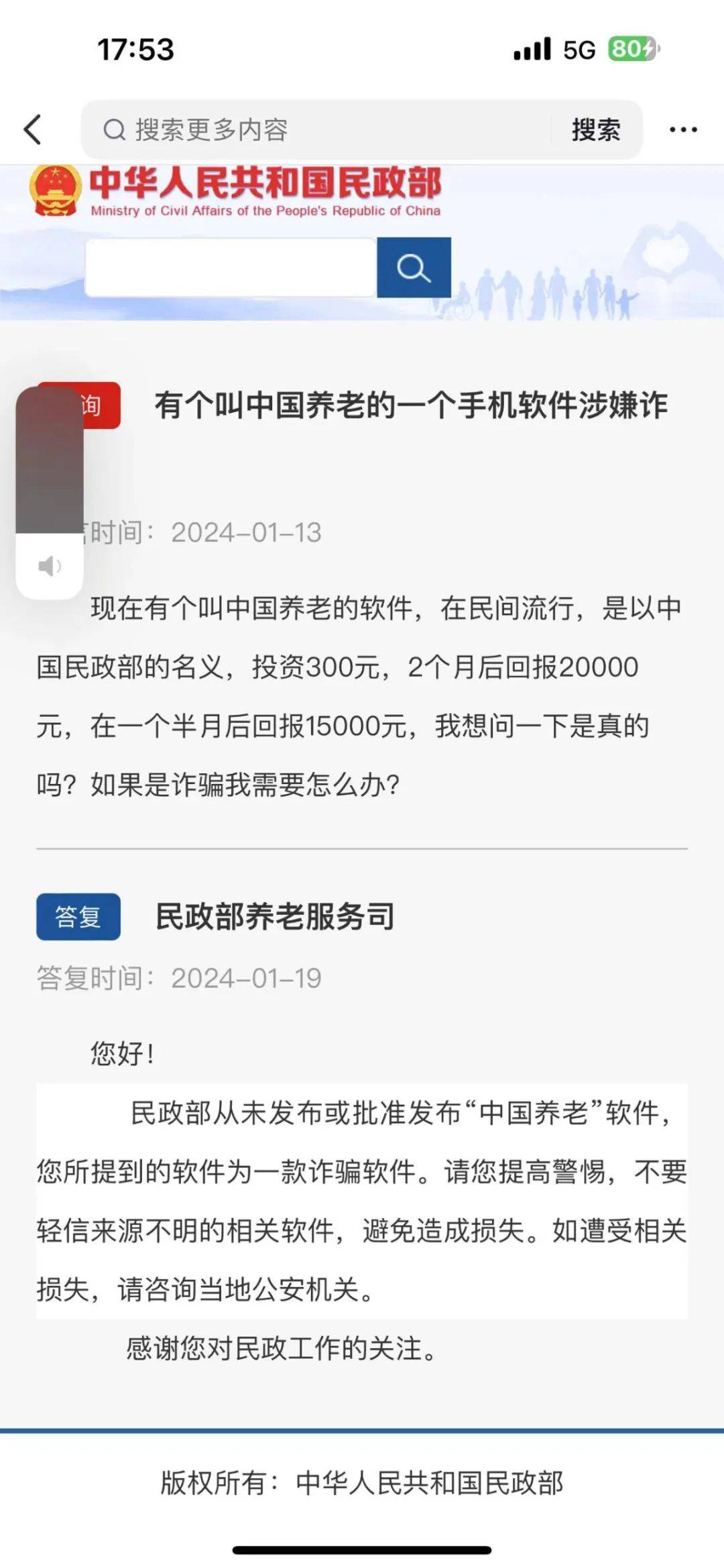 中國養(yǎng)老APP:民族資產(chǎn)解凍類詐騙,早在今年2月就已經(jīng)被證實為詐騙軟件