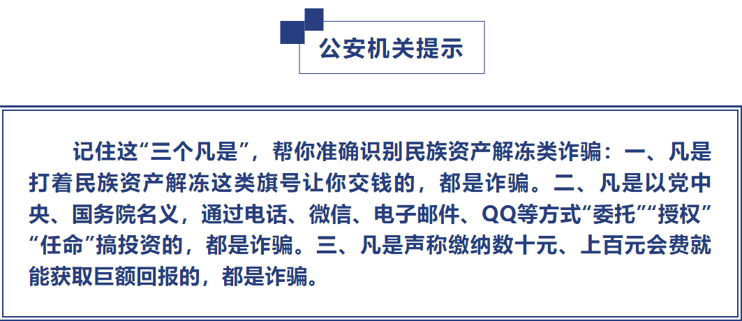 特殊行業(yè)全國統(tǒng)一大市場百年大系統(tǒng):民族資產(chǎn)解凍類詐騙