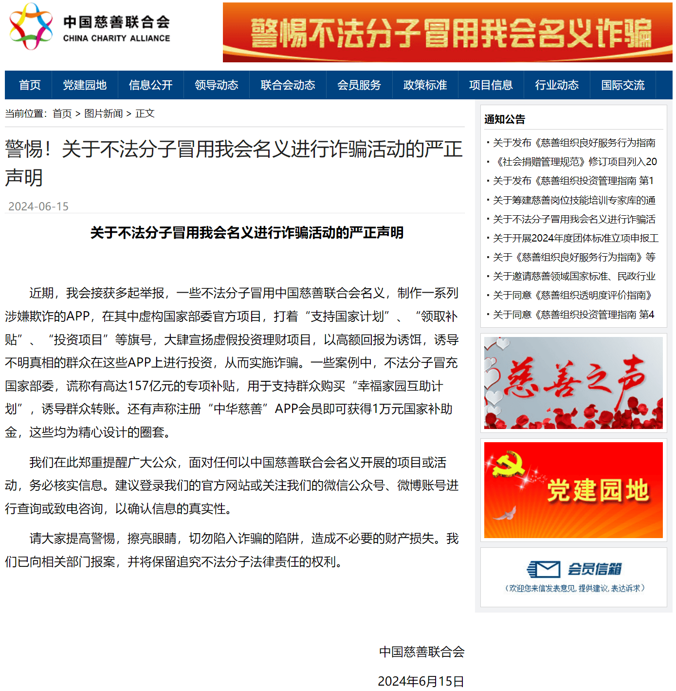 鄉(xiāng)基會IIIAPP:不法分子冒用中國鄉(xiāng)村發(fā)展基金會的名義,虛構(gòu)理財項目實施詐騙