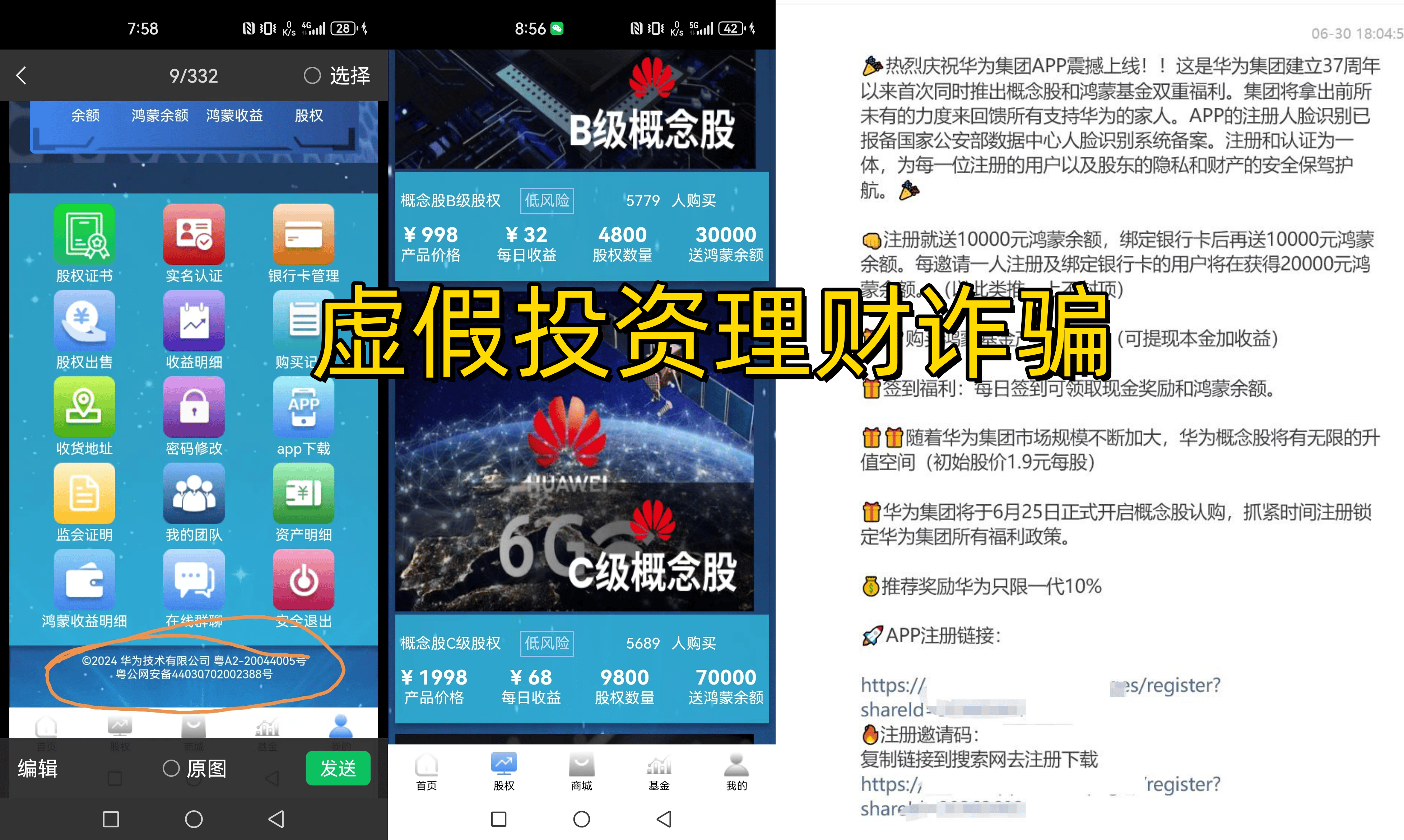 概念股APP:冒牌騙局,不法分子冒充華為集團的名義,虛構(gòu)理財項目實施詐騙活動。