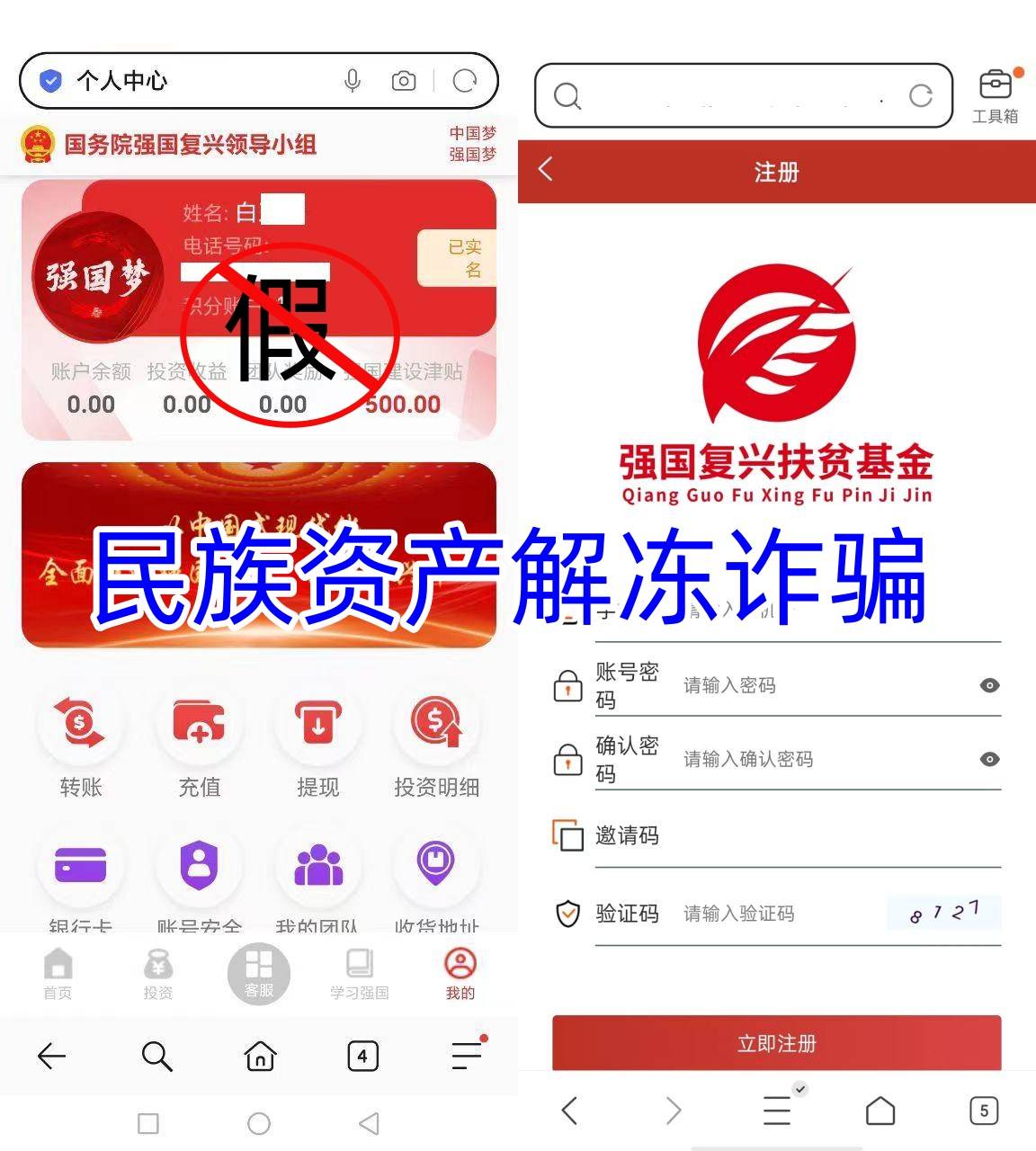 強國復興扶貧基金APP:民族資產解凍類詐騙,不法分子偽造政府文件進行詐騙