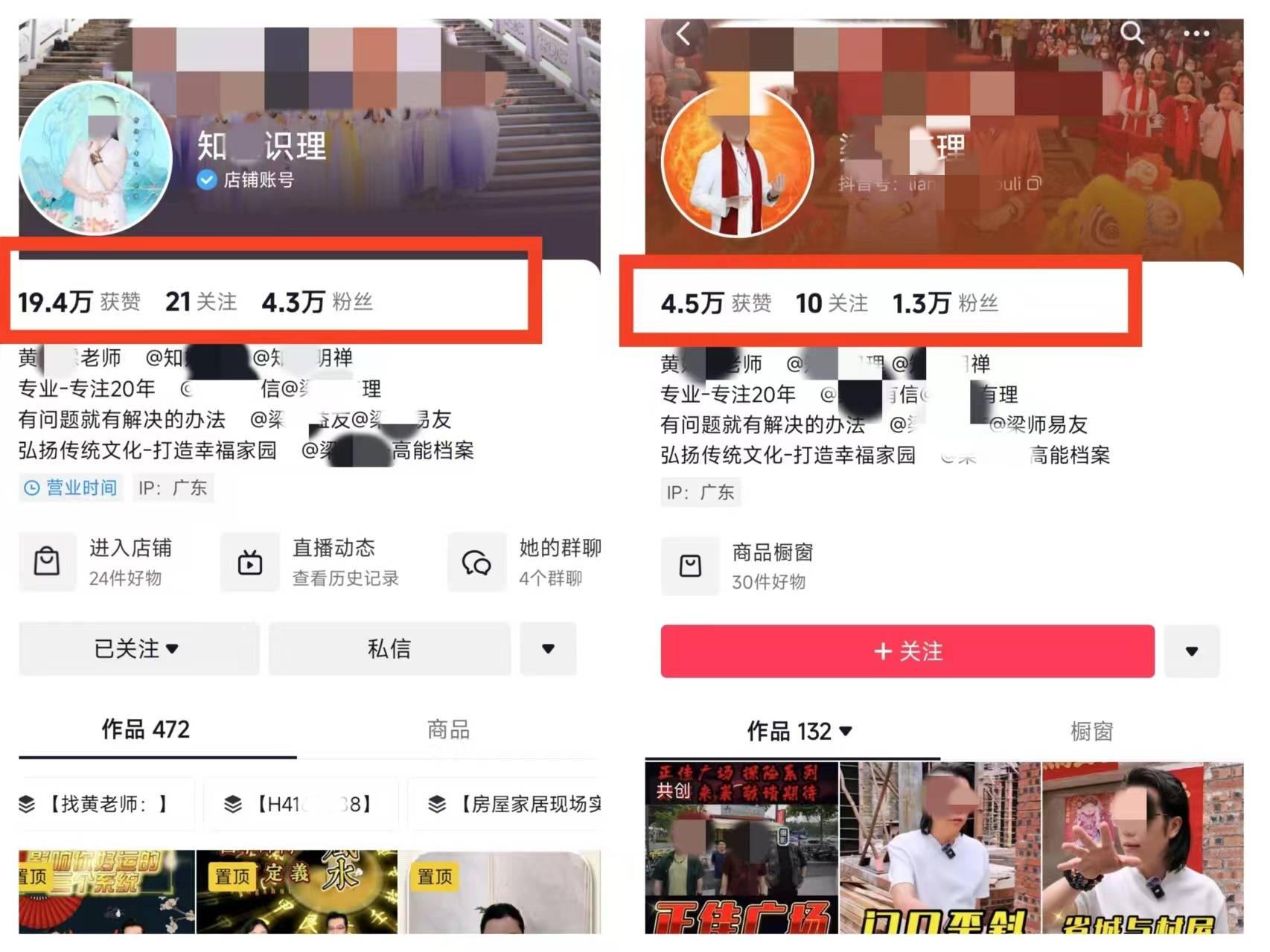 二人在短視頻平臺(tái)建立了“知某某理、知某某禪、梁某某信、某某師傅-高能檔案、梁某某理、梁某某米、梁某某友”等多個(gè)賬號(hào)且每一個(gè)都粉絲眾多,視頻獲贊幾十萬(wàn)次。