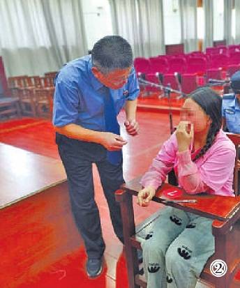 圖②:犯罪嫌疑人庭審現(xiàn)場流下悔恨淚水