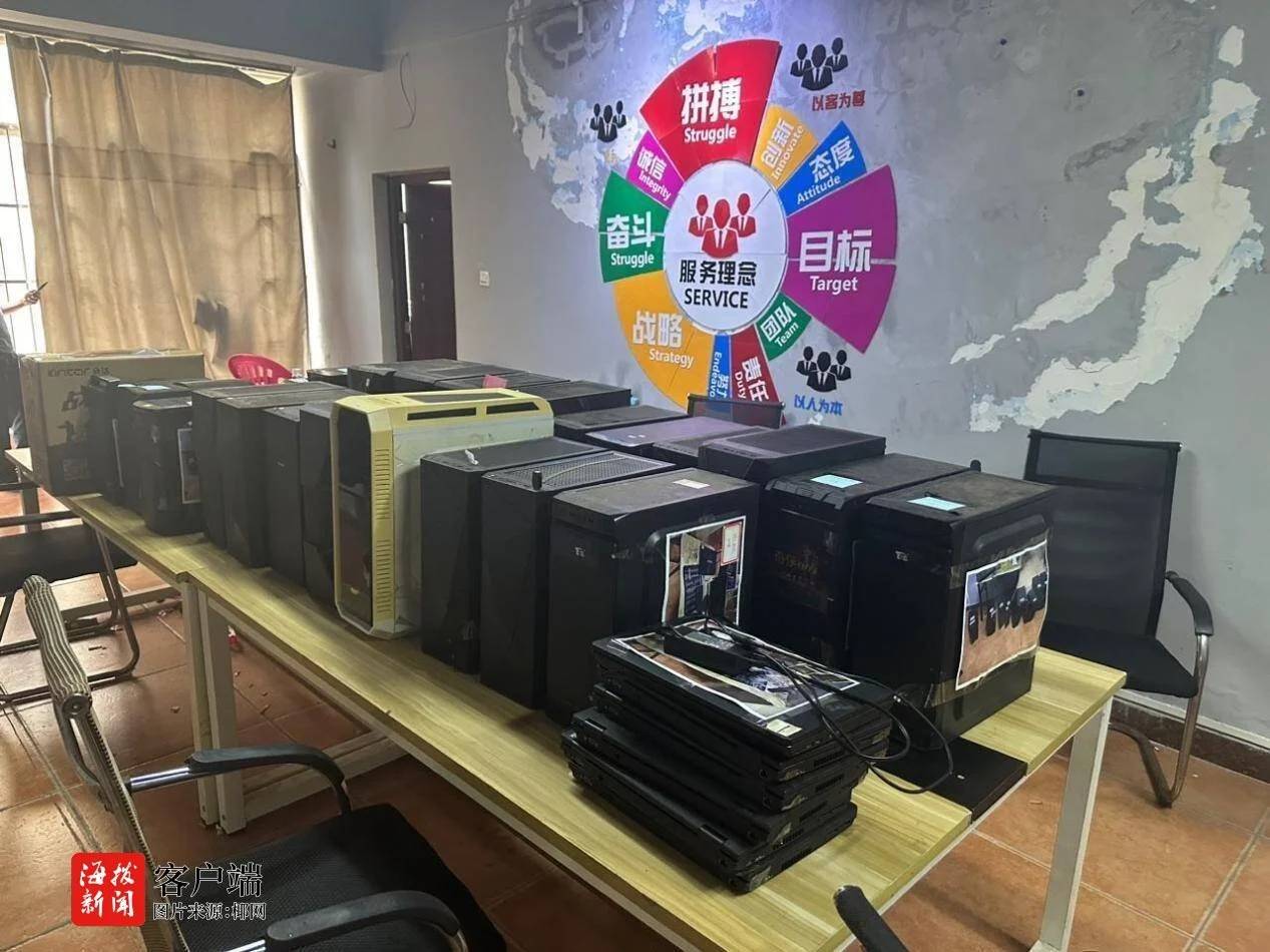 據(jù)了解,2024年7月16日21時(shí)許,??谑泄簿铸埲A分局反詐打擊工作組根據(jù)前期調(diào)查掌握到的線索,果斷出擊,在??谑协偵絽^(qū)博雅路某居民樓內(nèi)查獲一個(gè)電信詐騙窩點(diǎn),現(xiàn)場抓獲潘某澤(男,34歲)、符某(男,32歲)、林某陽(男,32歲)等10名犯罪嫌疑人,并查扣作案電腦32臺。