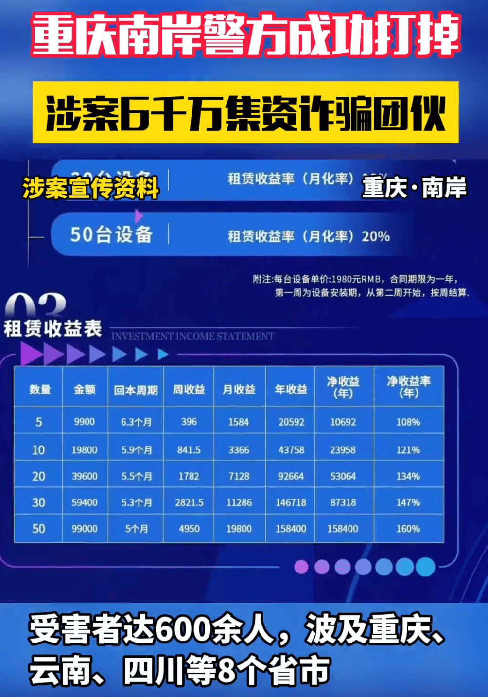 讓人更加瞠目的是,這個犯罪團伙僅有5000余臺設備,卻通過高盈利的迷惑宣傳,讓設備租賃數(shù)量達到近5萬臺。同時,該團伙所宣傳的高收益,在單臺設備實際營收上,竟然存在215倍的巨大差異。