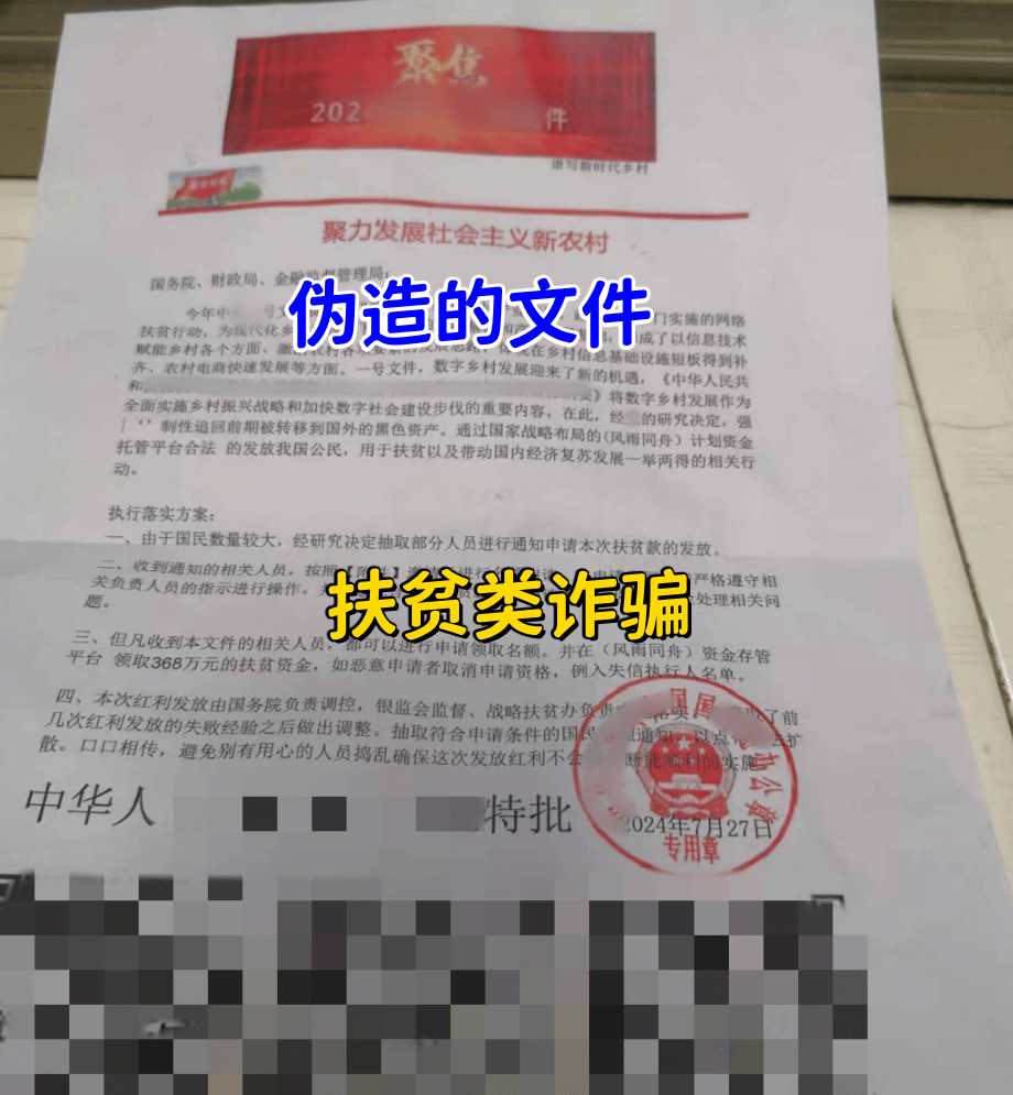 快遞扶貧信件詐騙:扶貧詐騙,近期,不法分子采用快遞郵寄偽造的紅頭文件,打著發(fā)放扶貧款的名義實施詐騙