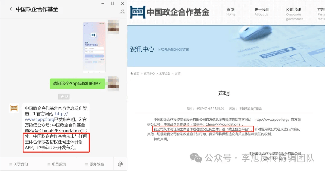 中國政企/PPP基金:冒牌騙局,不法分子冒充中國政企合作投資基金股份有限公司的名義,虛構(gòu)理財項目實施詐騙。