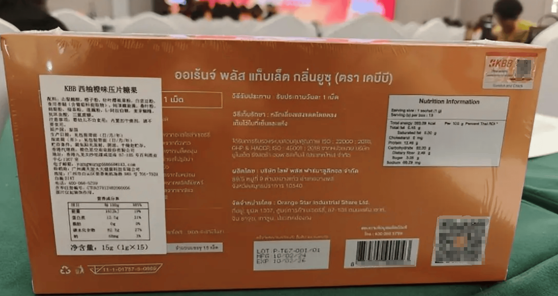 本網(wǎng)注意到,這款KBB阻脂片中文全稱為KBB西柚橙味壓片糖果。原產(chǎn)國為泰國,香港代理商:橙色星空實業(yè)股份有限公司,大陸經(jīng)銷商為廣州滿天星火大健康科技有限公司。