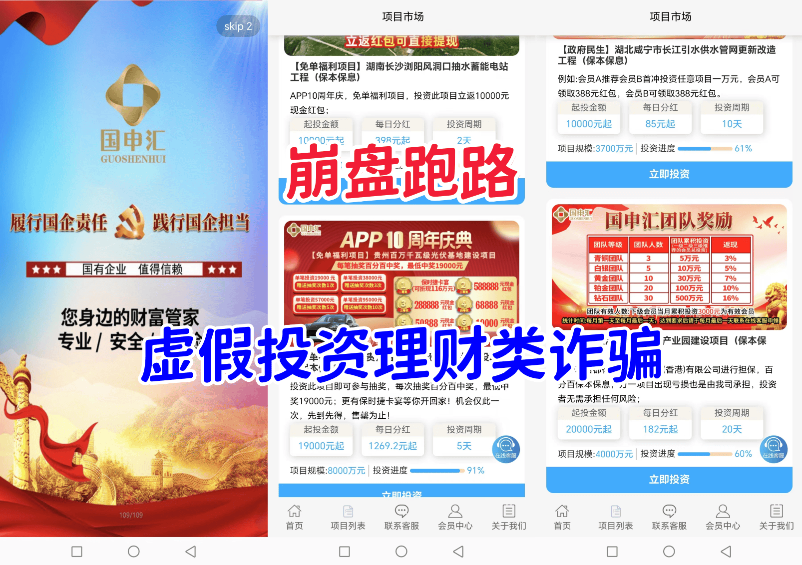 “國申匯”APP是冒牌虛假網(wǎng)絡(luò)投資理財(cái)詐騙平臺(tái),詐騙分子冒充“上海國申投資有限公司”的旗號(hào),打著保本保息,以小投資可以獲得年化收益266%—1095%不等的超高額回報(bào)實(shí)施詐騙。