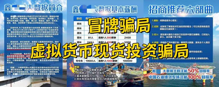 石油現(xiàn)貨交易平臺(tái):虛擬貨幣類(lèi)投資理財(cái)騙局,不法分子冒充中國(guó)石油、鑫某某大數(shù)據(jù)公司的名義,虛構(gòu)現(xiàn)貨投資理財(cái)項(xiàng)目,采用虛擬貨幣交易實(shí)施詐騙活動(dòng)。