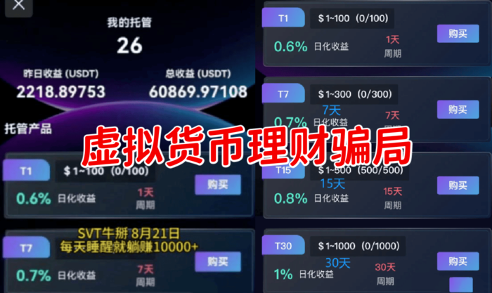 SVT聰明錢(qián)包:虛擬貨幣類(lèi)理財(cái)騙局,據(jù)網(wǎng)友反饋,該平臺(tái)推廣月化收益30%的理財(cái)項(xiàng)目,涉嫌非法集資、詐騙