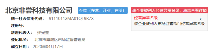 據(jù)了解,北京非嘗科技有限公司(以下簡(jiǎn)稱非嘗科技公司)成立于2020年4月17日,主要業(yè)務(wù)是民宿的預(yù)定、旅游產(chǎn)品的預(yù)定及銷售。旅游產(chǎn)品包括景區(qū)門票、樂園門票、酒店、機(jī)票等,其推廣途徑是小程序、短視頻等。