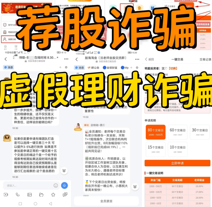 虛假投資平臺大多會要求受害人將資金轉(zhuǎn)賬到指定的個人賬戶或非當(dāng)前投資平臺的對公賬戶,而正規(guī)的交易平臺只能轉(zhuǎn)賬到開設(shè)的專用對公賬戶。同時,購買理財產(chǎn)品時,必須簽訂投資協(xié)議,資金將設(shè)置自動劃扣。如果對方要求只能轉(zhuǎn)賬到個人賬戶或要求轉(zhuǎn)賬的對公賬戶與平臺名稱不符的,那么極有可能是虛假投資理財?shù)摹昂谄脚_”。