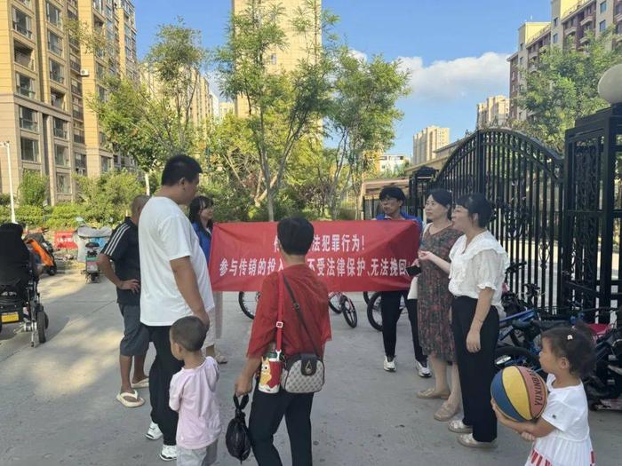 此次活動(dòng)采取了多種形式相結(jié)合的宣傳策略,以確保信息覆蓋廣泛且深入人心。首先,在小區(qū)的顯著位置,精心布置的橫幅標(biāo)語(yǔ)醒目地懸掛著,以直觀的方式向過(guò)往居民傳遞出拒絕傳銷(xiāo)的堅(jiān)定態(tài)度。同時(shí),利用錄音機(jī)循環(huán)播放反傳銷(xiāo)知識(shí),生動(dòng)詳細(xì)地闡述了打擊傳銷(xiāo)的重要性、傳銷(xiāo)活動(dòng)的欺騙手法及其特征、涉及傳銷(xiāo)的法律后果,以及居民應(yīng)如何有效防范傳銷(xiāo)、發(fā)現(xiàn)傳銷(xiāo)行為后的舉報(bào)途徑等關(guān)鍵信息,讓居民在耳濡目染中增強(qiáng)防范意識(shí)。