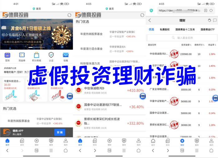 德商投資APP:虛假投資理財詐騙,不法分子冒充香港某公司,打著投資黃金、期貨、基金等高額返利項目實施詐騙活動。