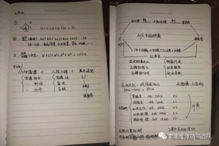 ▲傳銷窩點的每日伙食 來源:平安松滋 經(jīng)團隊證實,女兒陷入了以網(wǎng)戀奔現(xiàn)為拉人方式的北派傳銷組織,團隊已接到多名受害者舉報,該組織主營哈爾濱某雪蛤油膠囊產(chǎn)品,每單投資3900元,號稱出局后可獲百萬余元。組織以網(wǎng)戀奔現(xiàn)的方式邀約新人至淮安某老舊小區(qū),每個房間住著多名室友,大家會輪流做飯,待人親切友好,每天除了打牌就是帶“朋友”聽課,課程內(nèi)容主要涉及三商法、人際口碑、幾何倍增、五級三階制等等。北派傳銷一改以往吃大鍋飯睡通鋪的惡劣環(huán)境,專攻各類心理戰(zhàn)術為新人洗腦。 大學畢業(yè)生網(wǎng)戀被騙成都“1040陽光工程”傳銷騙局 接網(wǎng)友求助,去年暑假期間,剛剛大學畢業(yè)的兒子通過網(wǎng)上交友被所謂的“女友”帶去成都龍泉驛區(qū),繳納69800元參與了“1040工程”項目。隨后因表弟被邀約聽課后發(fā)現(xiàn)其是傳銷組織。網(wǎng)友得知后本想稱病騙兒子回家,但兒子并沒有相信,電話也時常不接。